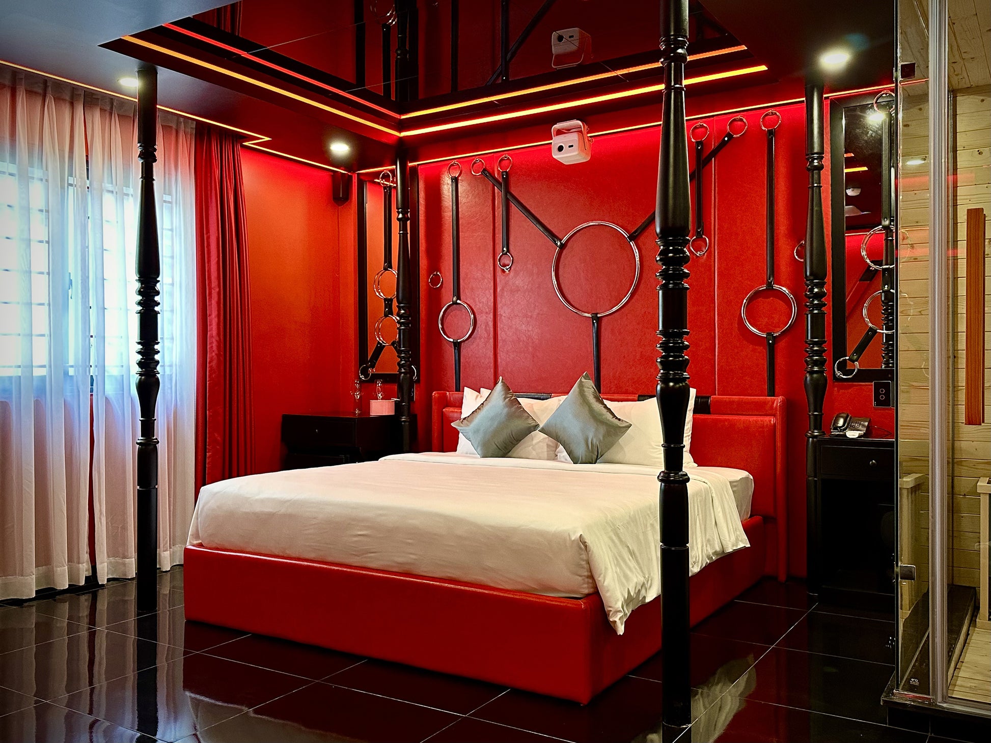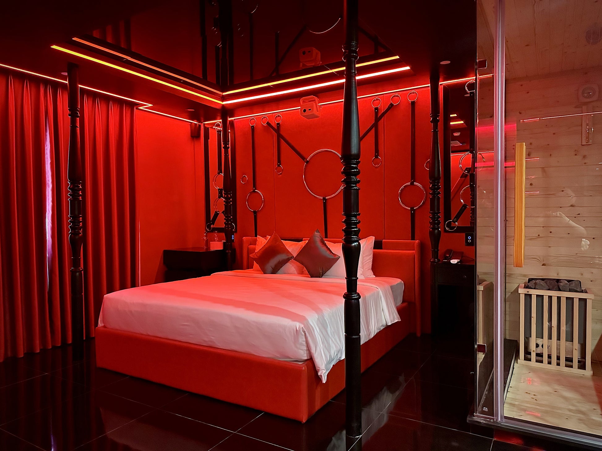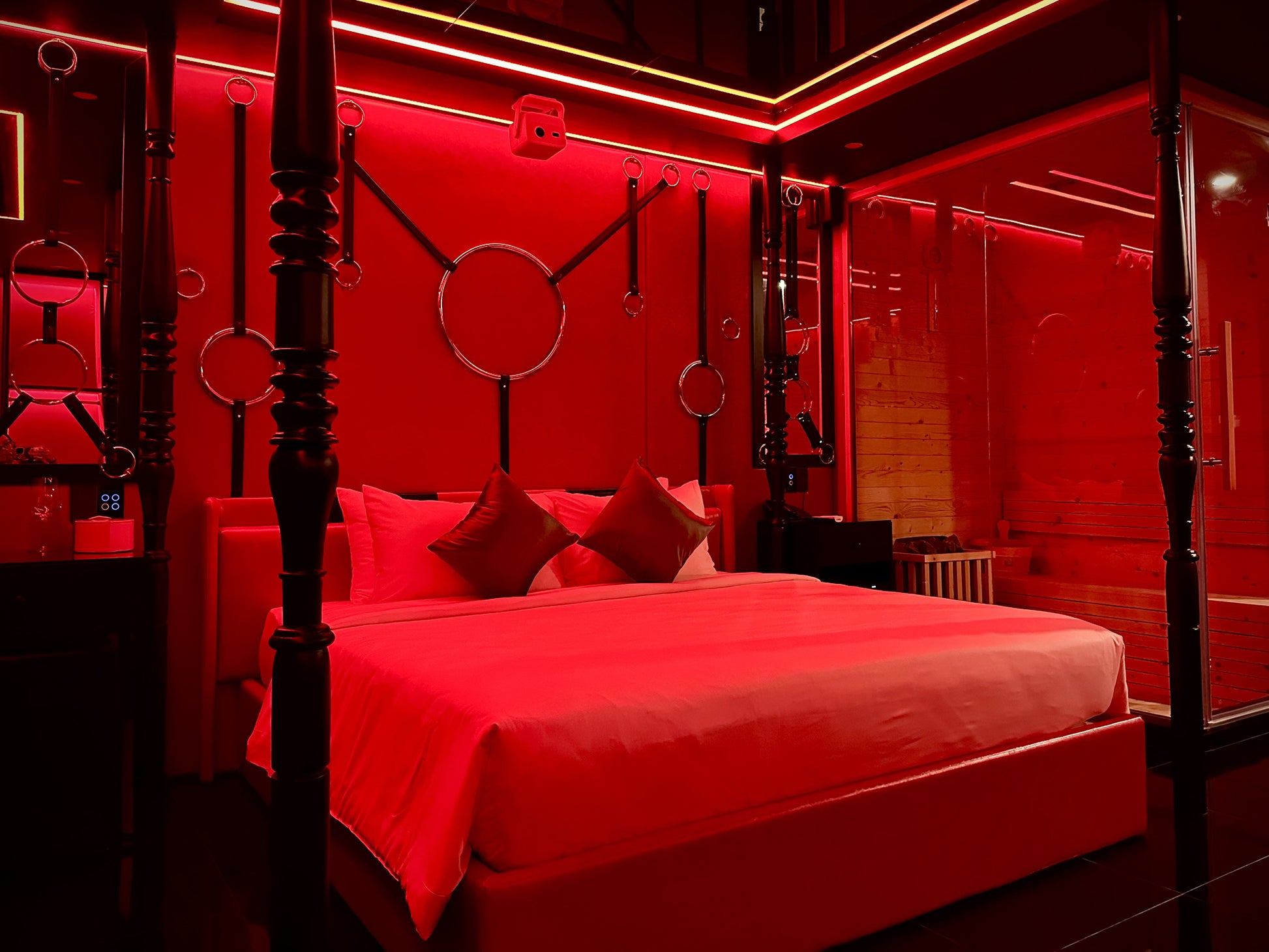 Lấy cảm hứng từ bộ phim 50 Sắc Thái, phòng Signature BDSM với tone đỏ đen quyến rũ sẵn sàng khơi dậy đam mê mãnh liệt cho các cặp đôi! Phòng trang bị: