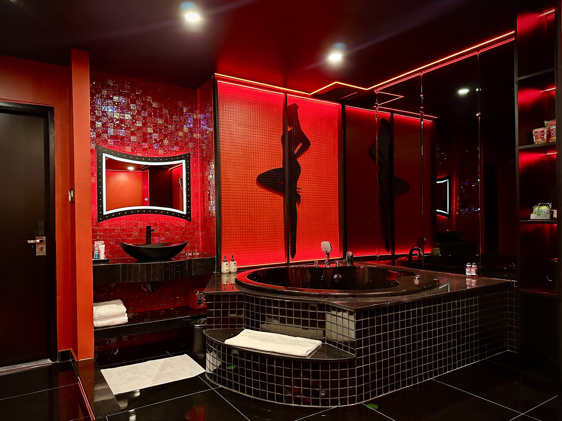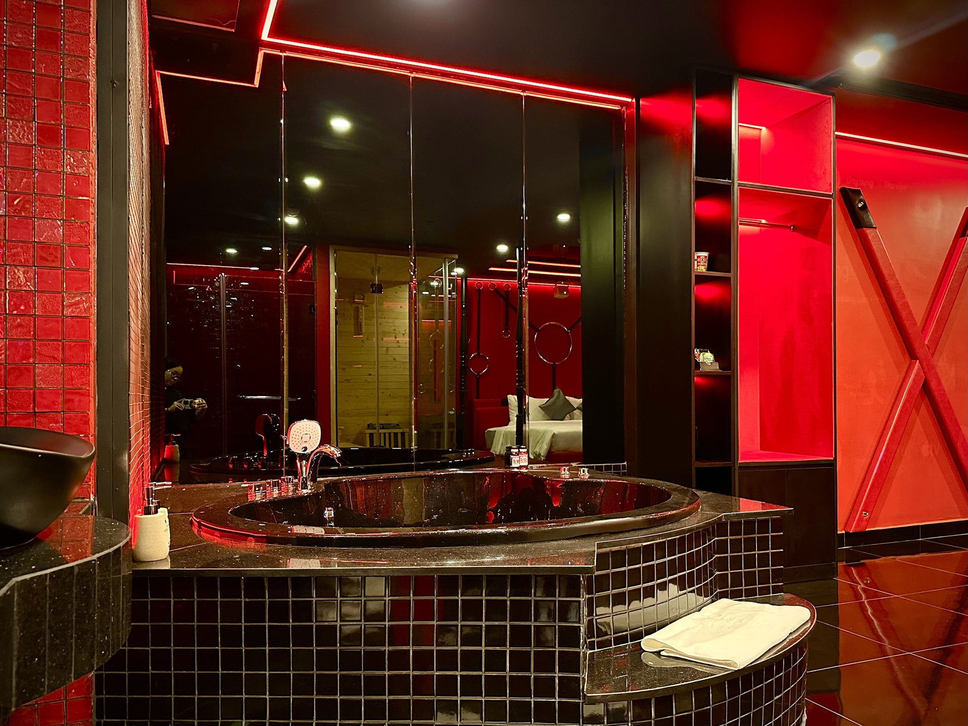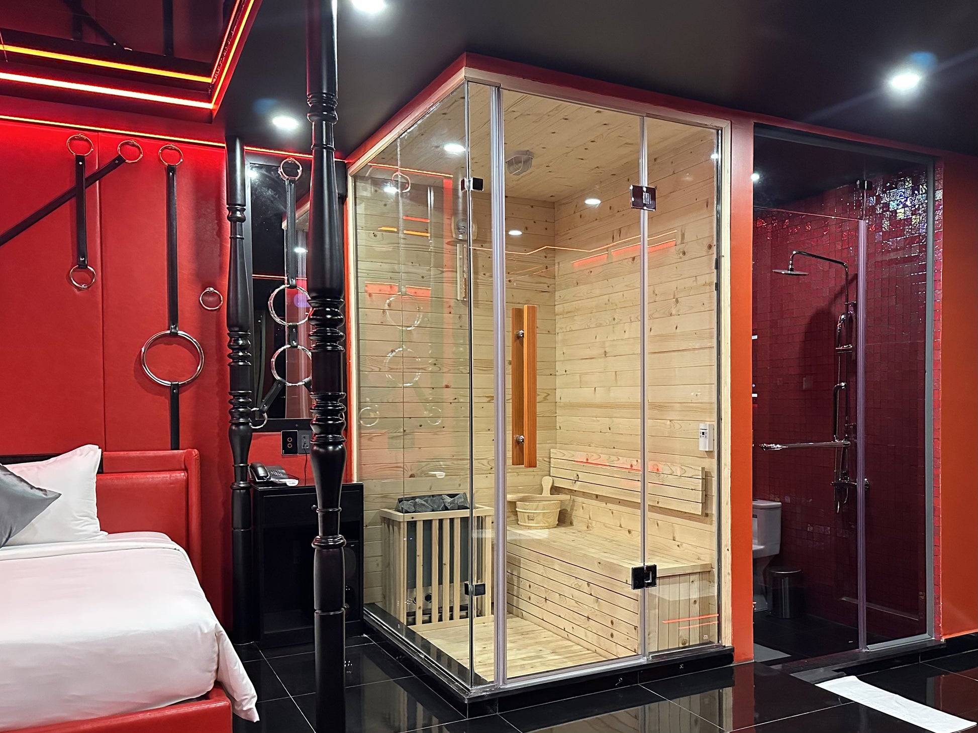 Lấy cảm hứng từ bộ phim 50 Sắc Thái, phòng Signature BDSM với tone đỏ đen quyến rũ sẵn sàng khơi dậy đam mê mãnh liệt cho các cặp đôi! Phòng trang bị: